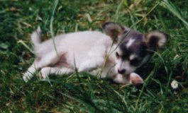 Zögernd bereitete ich meinen Mann auf das bevorstehende Ereignis vor. Ich hatte schon Kontakt mit einer Chihuahuazüchterin aufge-nommen und einen Besuch vereinbart. Jetzt mußte nur noch mein Mann mitspielen. |